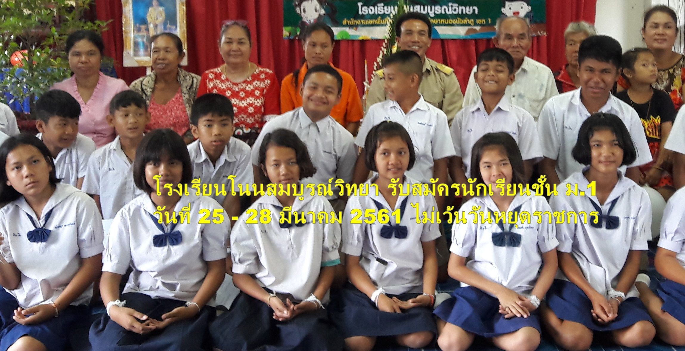 โรงเรียนโนนสมบูรณ์วิทยา รับสมัครนักเรียนชั้น ป. 6 เข้าเรียนต่อในระดับชั้น มัธยมศึกษาปีที่ 1 ระหว่างวันที่ 25 - 28 มีนาคม พ.ศ. 2561 ไม่เว้นวันหยุดราชการ ตั้งแต่เวลา 08.30 - 16.30 น.